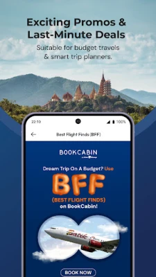 • Enjoy exclusive daily deals with BookCabin Friends & Family (BFF) promos—discounted flights and hotels waiting for you every day.