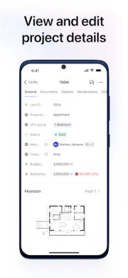 Through our web application and mobile app, you as an administrator can update the customer about: The construction process with timeline and progress, provide updates and practical information about the project, handle options and complaints, as well as much more