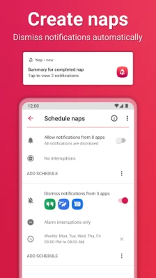 ◦ For each nap, you can configure which interruptions are allowed and automatically change your device’s 'Do Not Disturb' mode