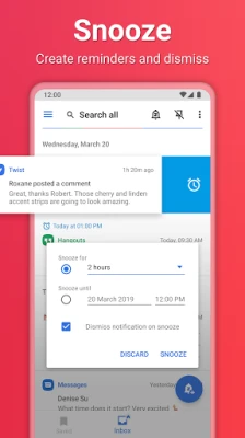 • Snooze notifications — create a reminder for later and dismiss notifications