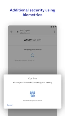 Okta Verify is a lightweight app that allows you to securely access your apps via 2-step verification, ensuring that you, and only you, can access your app accounts.