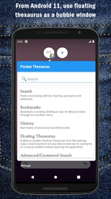 Vocabulary building is an essential part of acquiring a new language. Pocket Thesaurus helps you in that by providing everything you need to improve your language skills by enriching your vocabulary.