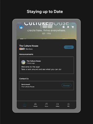 With this app, you can stay in communication with The Culture House regarding the calendar, deadlines, classes, and more! You can be active in GROUPS for each of your classes, get the most up-to-date schedule information from your teachers, watch rehearsal videos, and more!