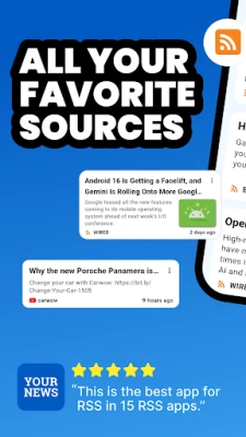 Stay updated with the news that matters to you with Your News. You are in full control of your content, including RSS feeds, YouTube channels, and Reddit posts. Read updates directly in the app or continue from your home screen with customizable RSS widgets. Enjoy the best content without distractions—only the news you care about, all in one place.