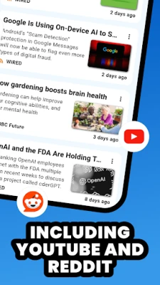 Read your news seamlessly within the app, watch YouTube videos directly with the in-app player, and access Reddit posts without switching apps. Get everything in one place!