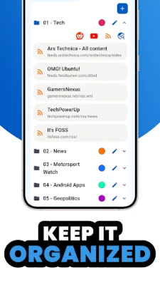 Quickly add your favorite RSS feeds, YouTube channels, or Reddit feeds with dedicated buttons, making it simple to tailor your personalized news aggregator experience.
